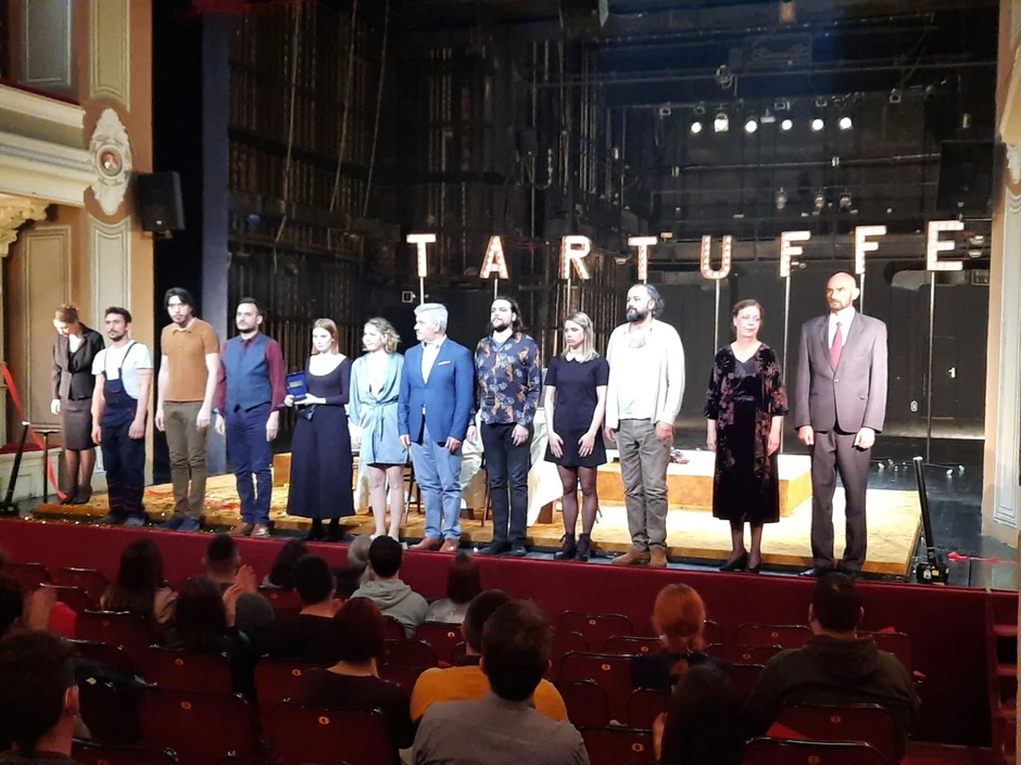 Hana je u ulozi Dorine doslovce briljirajući osvojila publiku. I Saša Torlaković kao naslovni junak, tj. pojava/fenomen, odnosno i oličenje vlasti koja manipuliše, zastrašuje, zavodi dok stavlja omču oko vrata, i snishodljivosti u čoveku samom, i propast koju donosi demon pristajanja, i medijske bljutave i banalne mreže u koju se ljudi pecaju… Publika nije štedela dlanove ni za ostali deo glumačke ekipe (Biljana Keskenović, Marko Savić, Danica Grubački, Ninoslav Đorđević, Dušan Vukašinović, Nemanja Bakić, Milorad Kapor, Dragana Šuša), a prožeta i duhovitošću, ova umetnički tako snažna i veoma aktuelna predstava, iznova se ispostavila kao prvorazredan događaj.