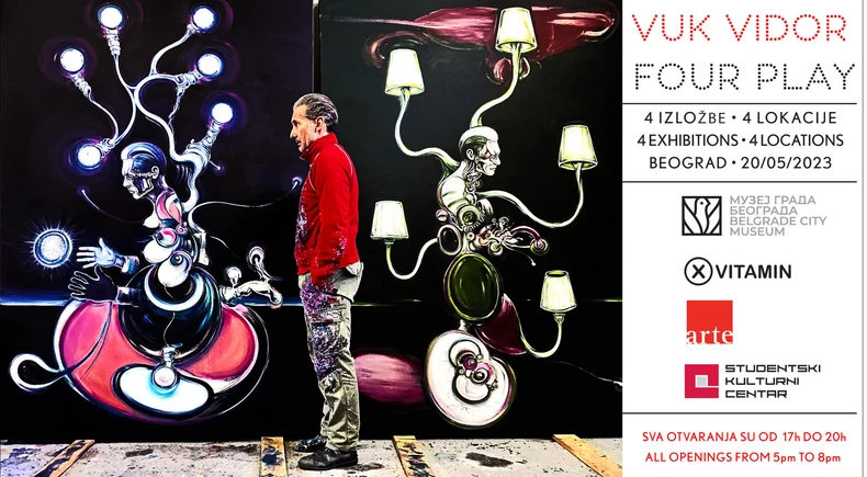 “Four Play” su četiri izložbe Vuka Vidora koje će se istovremeno održati u Beogradu i koje sve počinju 20. maja.