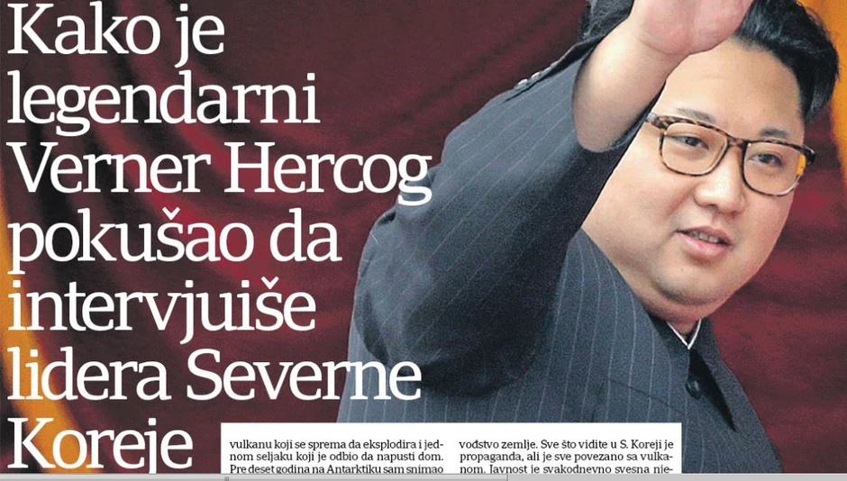 - Prenosimo intervju legendarnog nemačkog reditelja Vernera Hercoga koji je, snimajući film o vulkanima, stigao do Severne Koreje i tamo pokušao da dođe do kontroverznog lidera te zemlje Kim Džong Una.