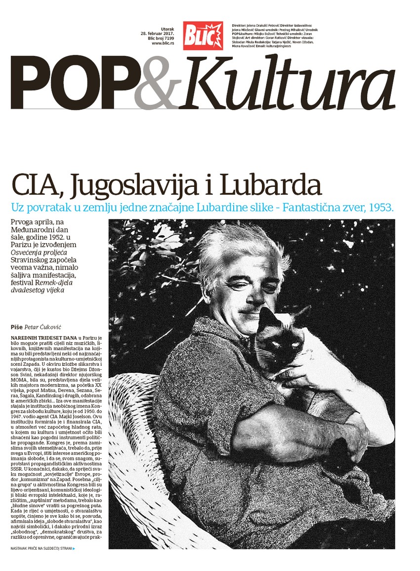 - Zašto je baš Petar Lubarda bio izabran od nove vlasti socijalističke Jugoslavije da u svetu predstavlja njenu kulturu i novu političku orijentaciju 50-ih godina godina prošlog veka, i kakvu je ulogu imala CIA u organizovanju nekih kulturnih manifestacija.