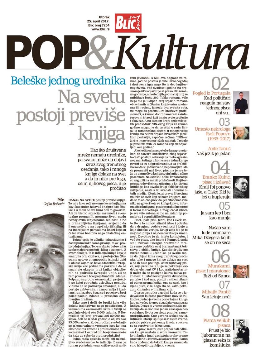U novom broju kulturnog dodatka “Pop & Kultura”, koji utorkom poklanjamo uz “Blic”, možete pročitati: