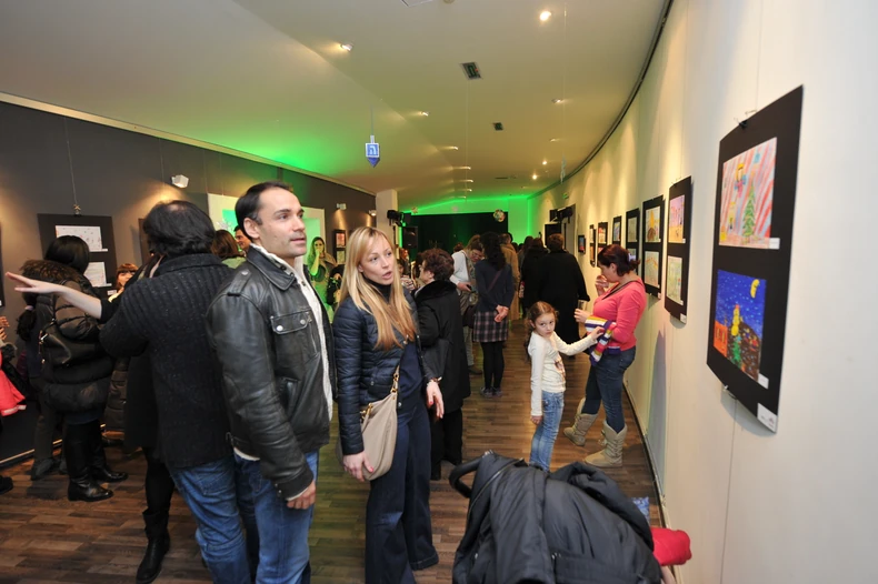 Ambasador Izraela Nj.E. gospodin Josef Levi, koji je otvorio izložbu, zapalio je prvu sveću na osmokrakom svećnjaku dok je predsednik GO Palilula Stojan Nikolić zapalio drugu sveću kao gest obeležavanja prijateljstva između srpskog i jevrejskog naroda. Izložba „Pogled u svet“ realizovana je u saradnji sa opštinom Palilula i OŠ „Starina Novak“,na inicijativu i pod pokroviteljstvom izraelskog investitora, kompanije Direct Capital S, i predstavlja jedinstvenu zbirku dečijih radova inspirisanih zajednicom i duhom predstojećih praznika. Kulturna različitost je bila inspiracija da najkreativniji učenici ove palilulske škole i članovi Jevrejskog omladinskog centra saradjuju i pokažu svoj talenat.