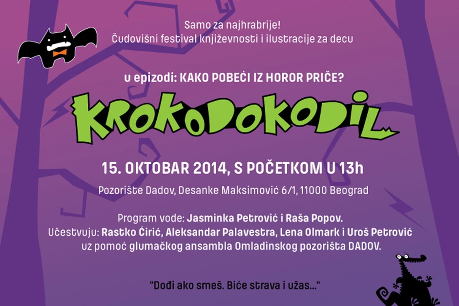 Dečiji festival Krokodil biće održan u sredu, 15. oktobra, od 13 sati u beogradskom pozorištu "Dadov", a u fokusu programa biće horor priča, najavili su danas organizatori.