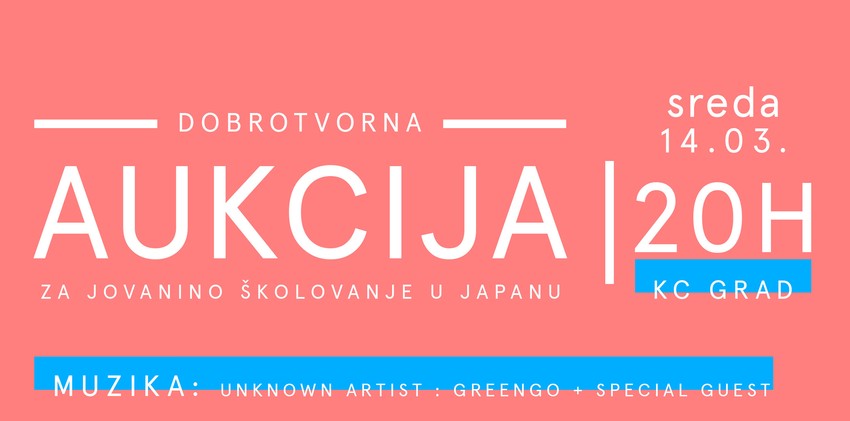 "Jovana je primljena na ovo jedinstveno umetničko usavršavanje kao jedna od dvoje umetnika iz celog sveta. Pomažući Jovani pomažemo razvoj umetnosti i kulture u Srbiji i zato Vas pozivamo da nam se pridružite na ovoj dobrotvornoj aukciji i kupovinom ponuđenih dela mladih domaćih autora pomognemo Jovani", kaže se u saopšenju organizatora. A o Jovani Čavorović i njenoj borbi da stigne do usavršavanja u Japanu pisao je portal gminfo.rs.