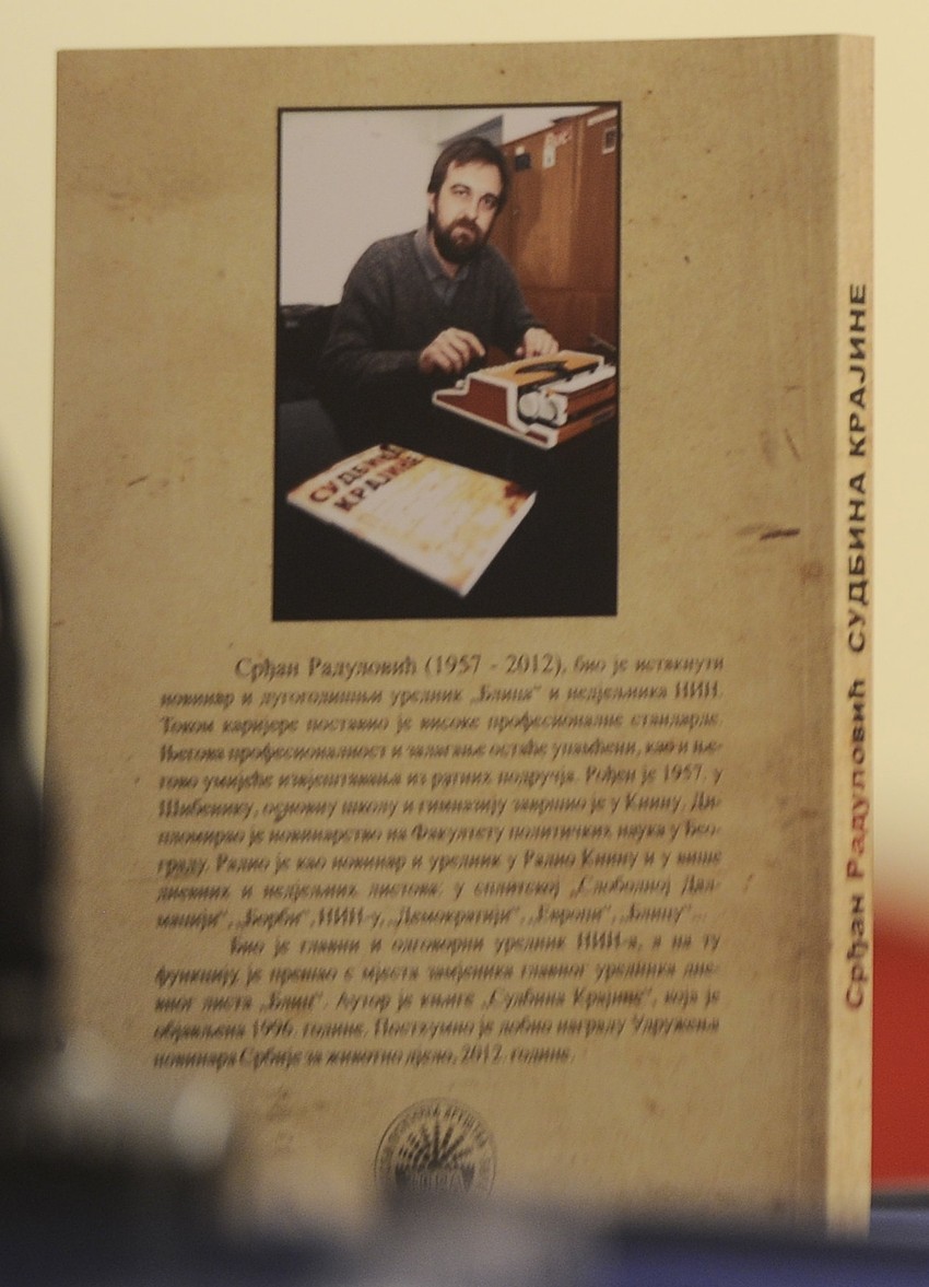 Promocija drugog, nepromenjenog (reprint) izdanja hronologije „Sudbina Krajine“ Srđana Radulovića (1957-2012), istaknutog novinara i dugogodišnjeg urednika "Blica" i nedeljnika NIN, održana je večeras u Domu Vojske Srbije u Beogradu.