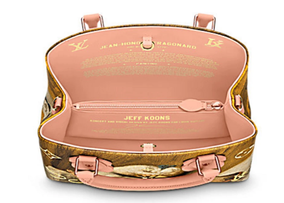 U unutrašnjosti svake tašne nalazi se portret i kraća biografija umetnika kao i naziv slike koja je na spoljašnjosti. Tu je i privezak/silueta Kunsovog zeke od balona, kao i prerađen čuveni LV monogram sa inicijalima JK (Jeff Koons).