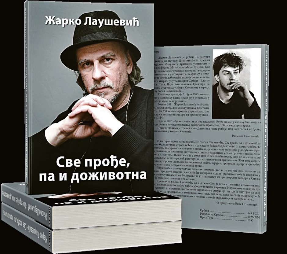 Slavni glumac napisao je svoju treću knjigu "Sve prođe, pa i doživotna" u kojoj na uvid javnosti daje dramatični zatvorenički dnevnik iz Zabele gde je proveo dve i po godine, a gde je premešten iz crnogorskog zatvora u Spužu u kome je bio 25 meseci.