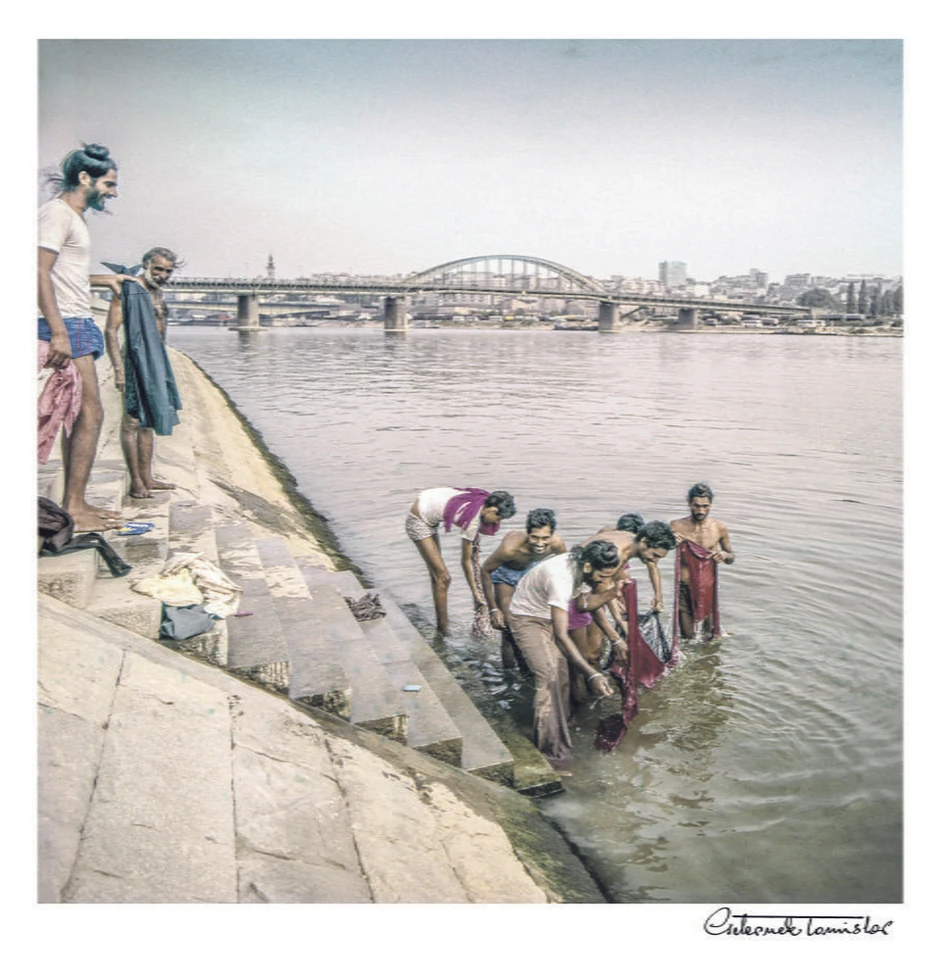 Peternekove fotografije čaplje koja uzleće iznad ratnog ostrva, košave koja reže nad Dunavom, čamaca u izmaglici, alasa koji izvlače mrežu, kupača (Indusi koji obavljaju ritualno pranje u Savi) - pričaju o bliskosti živih bića s vodom, o moćima prirode i ljudskom dostojanstvu, verovanju da voda nudi hiljadu života, kao što je zapisano u jednom starom kineskom tekstu.