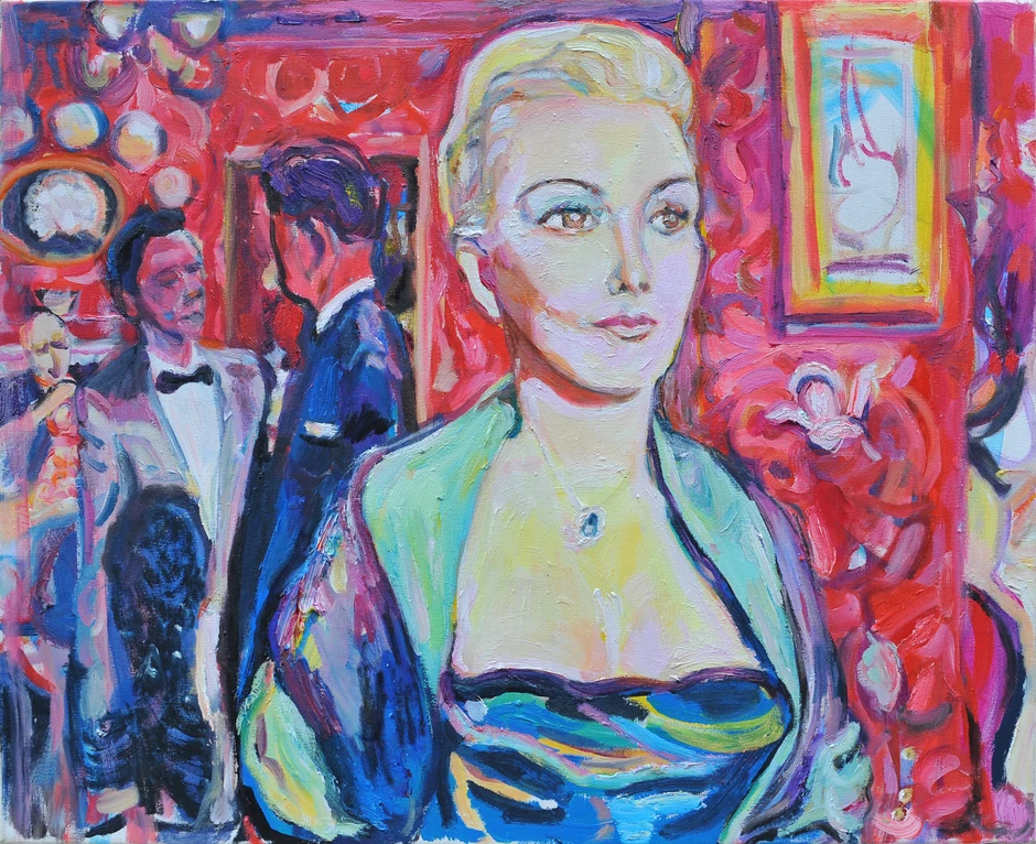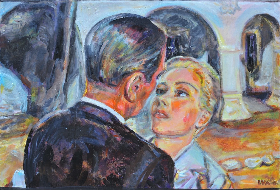 - Pratila sam filmove i uživala u scenama kroz muziku i ambijent i pokušala da pokažem kako ja u slikarskom i emotivnom smislu doživljavam te kadrove. Hičkok je mnogo pažnje obraćao na detalje, kostime, dekoraciju, muziku, šareniš kadrova, mnogoljudnih scena. Tih pedesetih godina dizajn i visoka moda su odisali nekom notom čistog i lepog, na kostimima je angažovao poznatu kreatorku Edit Had. Mene su, u slikarskom smislu, ti filmovi jako "vozili" i poželela sam da im se vratim. Htela sam da prikažem šta je to slikarsko u filmu. Neobično je da se do sada u praksi niko nije bavio time, da nijedan slikar nije bio inspirisan nekim filmom. A Hičkok je bio veliki majstor u vizuelnom smislu i slikarstvo mu je bilo veoma važno: u njegovim filmovima ima mnogo umetničkih dela – ističe Iva.