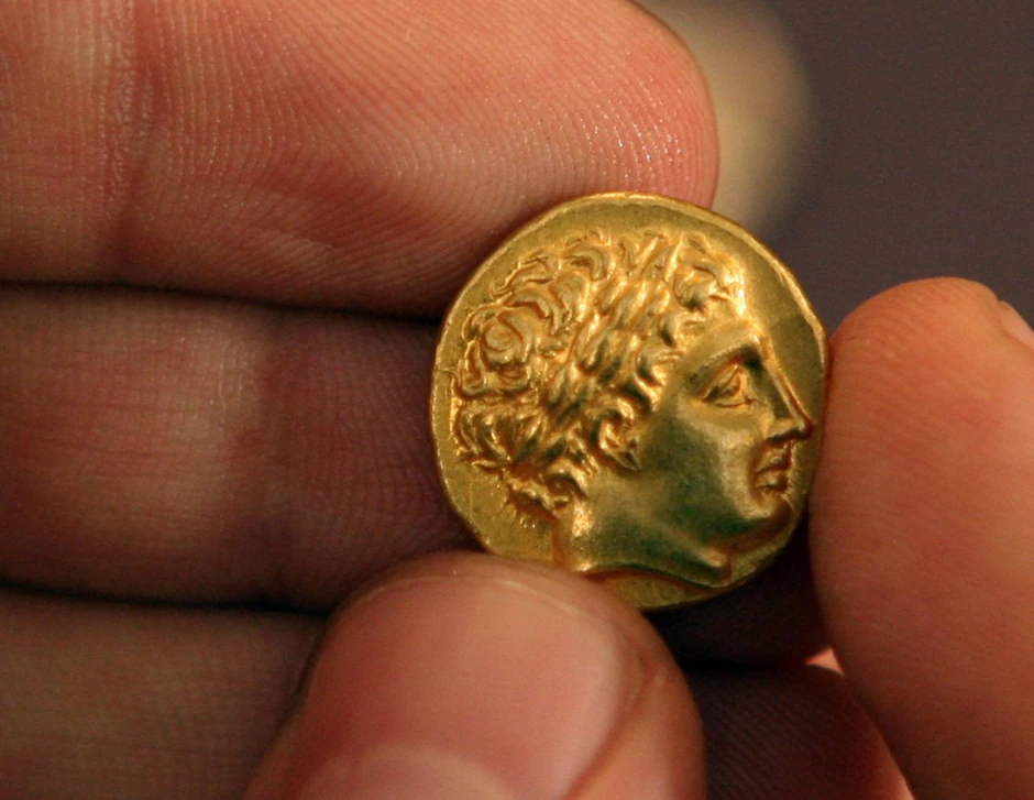 Kandžo je danas naveo da neki od novčića sa jedne strane nose lik Aleksandra Makedonskog a sa druge grčkog boga Zevsa. Aleksandar Makedonski vladao je od 336. do 323. godine pre nove ere.