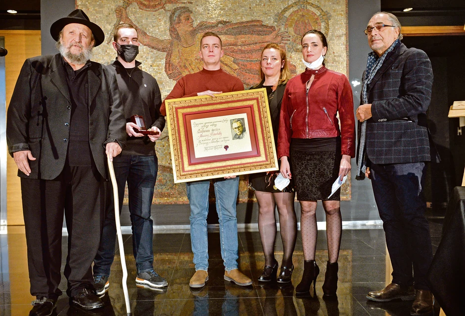 Petar Božović predao je nagradu sinovima i kćerima Milana Laneta Gotovića; Janku, Milici, Spasoju i Neveni.
