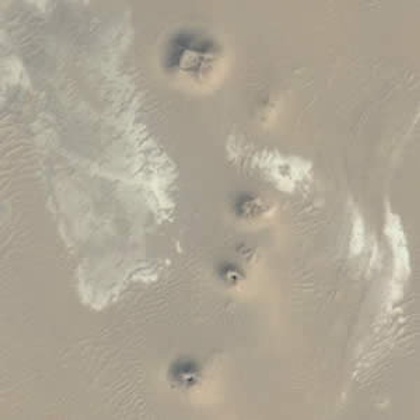 Prva lokacija je udaljena 19 kilometara od grada Abu Siduma, a na njoj se nalaze četiri brežuljka piramidalnog oblika i jedan veliki trougaoni plato.