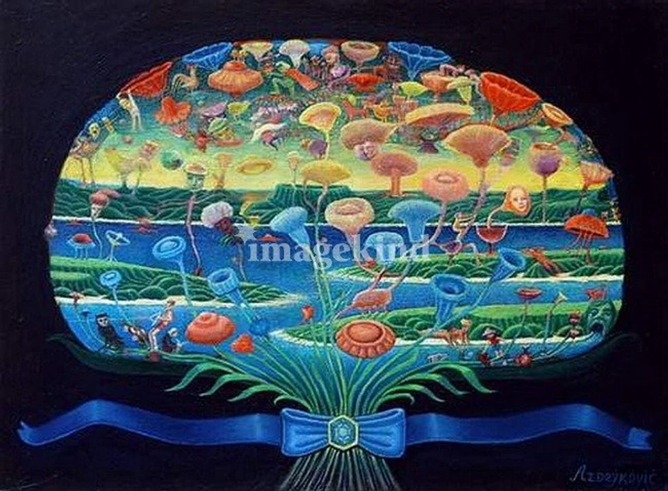 "Moj rad se sastoji iz više ciklusa kojima se povremeno vraćam i koji se međusobno prožimaju. To su najčešće "Drvoredi", "Prizori", "Portreti sa kapama i sesirima", "Nepoznata cveca", "Izmišljeni pejsaži" kao i poslednja dva,-" Ekspanzije mikrokosmosa" i "Dunav Tisa Dunav" koje do sada nisam izlagao", kaže Azdejković.