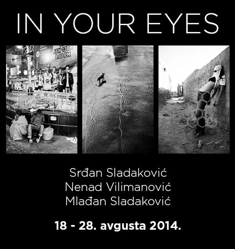 Izložba fotografija "In Your Eyes" biće otvorena u ponedeljak, 18. avgusta, od 19 sati u beogradskoj galeriji "O3one", a na postavci su predstavljena dela trojice fotografa - Srđana Sladakovića, Nenad Vilimanovića i Mladjana Sladakovića koja su nastala na ulicama raznih gradova sveta i spojena u jednu priču.