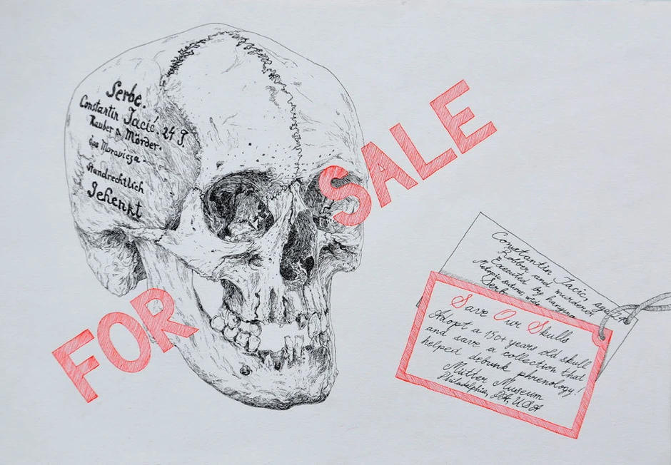 Slika na kojoj je Stefan Tasić „uvezao“ više svojih interesovanja prikazuje Maksimilijana Faktoroviča, patrijarha sveprisutne veštine kozmetičke, poznatijeg pod nom de plume Max Factor. U potrazi za idealom lepote koji će potom biti multiplikovan na filmskoj traci ovaj poljski emigrant, osnivač imperije ulepšavanja i korekcija, neka vrsta praoca današnje post-humane epohe u kojoj sveštenike zamenjuju plastični hirurzi, koristio je „kalibrator lepote“, spravu koja (kao i mnogo toga što se koristi u industriji lepote) neodoljivo podseća na alate za mučenje. Pred Tasićevom slikom koja je u osnovi nedvosmisleni citat, posmatrač je zbunjen – nije sasvim jasno da li se to merenje obavlja u nekakvom Lombrozovskom cilju. Tu sumnju podupiru i čudno izobličene lobanje koje kao pattern lebde „ispred“ prizora i daju ritam celom prizoru. Lobanje ovde nisu samo memento mori već služe kao ulaznica u lavirint pitanja o lepoti, rasi, zastranjenjima istorije...