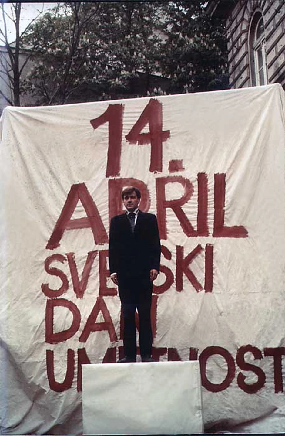 U katalogu za izložbu, istoričarka umetnosti, Danijela Purešević kaže da je svoje umetničko ime De Stil (kasnije Destil) dodao 1982. godine „poigravajući se imenom umetničke grupe De Stijl i nadimkom svog dede, koga su, budući da se bavio proizvodnjom rakije, zvali Destilacija. Tada u Galeriji SKC-a ostvaruje, kada je reč o tretmanu prostora slike, manifestnu izložbu „Fragmenti slike“. Sliku dekonstruiše, cepa, ambijentalizuje - njen prostor proširuje na celokupni volumen galerije, tretirajući ga kao sakralni prostor, kao hram“