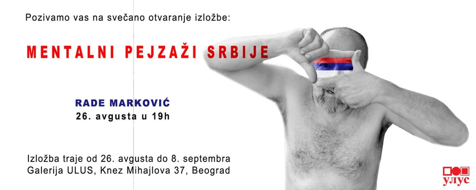 Izložba Radeta Markovića pod nazivom “Mentalni pejzaži Srbije” biće otvorena u sredu, 26. avgusta, u 19 sati u Galeriji ULUS. Angažovani pristup odlikuje ovu kao i raniju izlagačku aktivnost ovog stvaraoca.