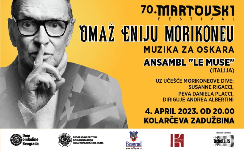 Muziku Enija Morikonea iz nagrađivanih filmova izvodi orkestar Le Muse (Italija), uz učešće Morikoneove dive, muze i inspiracije Suzane Rigači, peva Daniela Plači, a diriguje Andrea Albertini.