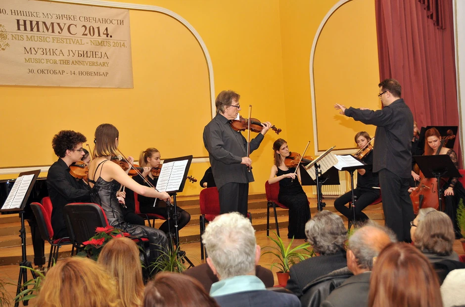 Poznati srpski violinist Jovan Kolundžija svirao je sinoć sa ansamblom "Taurunum" pod dirigentskom palicom Nebojše Cvijanovića na 40. Niškim muzičkim svačanostima (NIMUS).