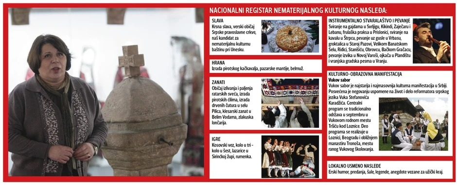 Sve ovo posledica je činjenice da je, posle višegodišnjeg iščekivanja, Srbija konačno dobila Nacionalni registar nematerijalnog kulturnog nasleđa u koji je upisano 27 običaja (zanatskih znanja i veština, kulinarskih specijaliteta, priredbi, rituala i ostalih elemenata narodne tradicije i folklora).