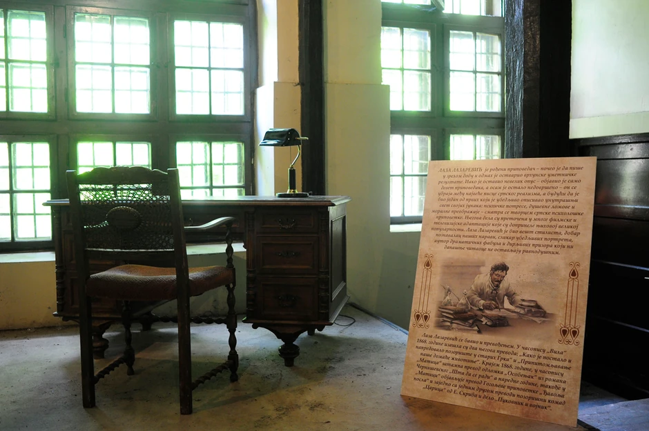 Radna soba Laze Lazarevića nalazila se na prvom spratu vile od crvenih opeka koja je sada u toliko zapuštenom stanju da se šetanje po njoj sprovodi na sopstvenu odgovornost. Tamo i dalje stoji kamin sa grbom Obrenovića, kraj kojeg je Kunibert pisao istoriju Srbije a Laza Lazarević, tokom besanih noći u kojima je obilazio pacijente, pisao pripovetke i ništa manje poetične lekarske izveštaje.