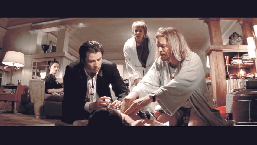 Pošto je Mija uzela preveliku dozu heroina, Vins je odvodi kod Lensa i Džodi. Lens mu daje injekciju adrenalina i markerom iscrtava tačku na njenim grudima kroz koji Vins mora da probode iglu ne bi li je zabo pravo u srce. Realnost ove napete scene postignuta je tako što je Travolta izvlačio iglu iz Uminih grudi pa je snimak pušten unazad.