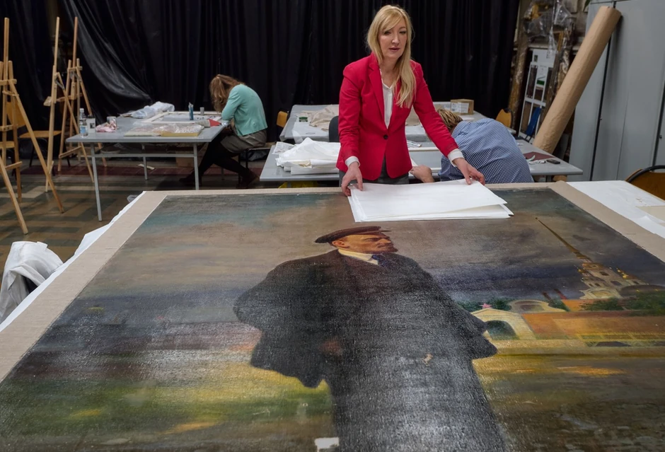 Pre renovacije, dvostrano umetničko delo čuvano je u peterburškoj školi skoro 70 godina. Predstavnik akademije kaže da je Lenjinova slika delimično oštećena sedamdesetih godina prošlog veka, a njena restauricija započeta je 2013. Ovo neverovatno otkriće ukazalo se nakon skeniranja slike rendgenskim zracima, kada je uz lice Lenjina "iskrslo" još jedno.