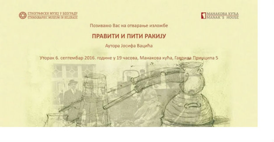 Izložba "Praviti i piti rakiju" autora Josifa Vacića, biće otvorena sutra u 19.00 časova u Manakovoj kući, najavljeno je iz Etnografskog muzeja.
