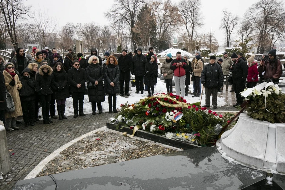 Poslednji pozdrav Marku Nikoliću na Novom groblju uputila je v.d. upravnika Narodnog pozorišta, rediteljka Ivana Vujić:
