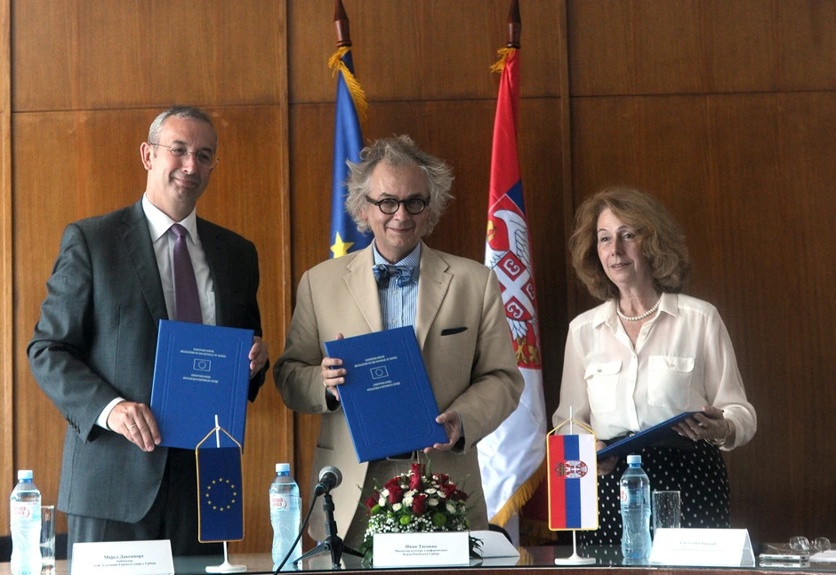 Kroz ovaj projekat postojeća mreža biblioteka u Srbiji dobiće novu dimenziju, jer se stvaraju pouzdani uslovi za pristup informacijama u Evropskoj uniji, rekao je Ivan Tasovac ministar kulture nakon potpisivanja Memoranduma o razumevanju sa Majklom Devenportom šefom delegacije Evropske unije u Srbiji i Svetlanom Jančić direktorkom Narodne biblioteke Srbije, danas u toj instituciji kulture