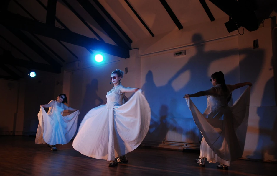 U režiji i koreografiji Sonje Vukićević, "Hodnici žuti, purpurni, plavi" premijerno su izvedeni 28. juna 2009. godine, a večerašnje izvođenje bilo je 11. po redu.