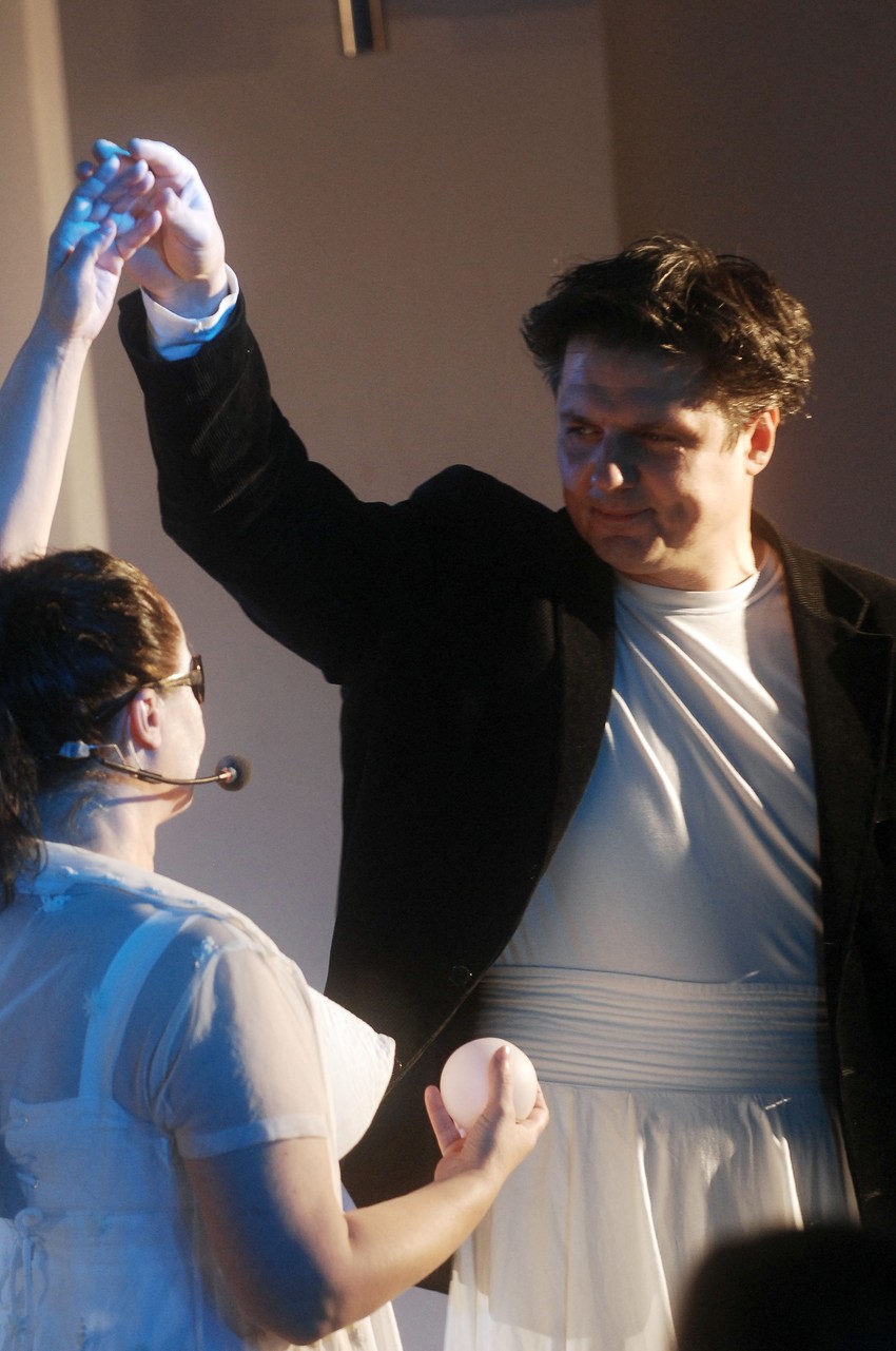 U predstavi se pojavljuje i Nebojša Dugalić koji recituje i pleše sa jednom od učesnica.