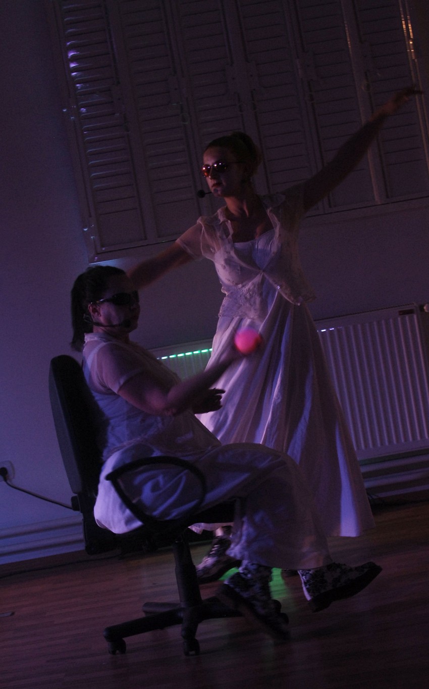 Glumac Miki Manojlović prisustvovao je večerašnjem izdanju umetničkog čina "Hodnici žuti, purpurni, plavi", koje je održano u Radionici Integracije, a u kojem je igralo šest slepih i slabovidih osoba, zajedno sa glumcem Nebojšom Dugalićem.. Namera organizatora bila je da oni na taj način budu učesnici i kreatori umetnosti, a ne samo posmatrači.