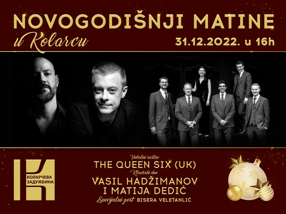 Muzika iz Diznijevih crtanih filmova i koncerti londonskog vokalnog sastava "The Queen's Six" i renomiranih džez muzičara Vasila Hadžimanova i Matije Dedića očekuju publiku 31. decembra u Kolarčevoj zadužbini.