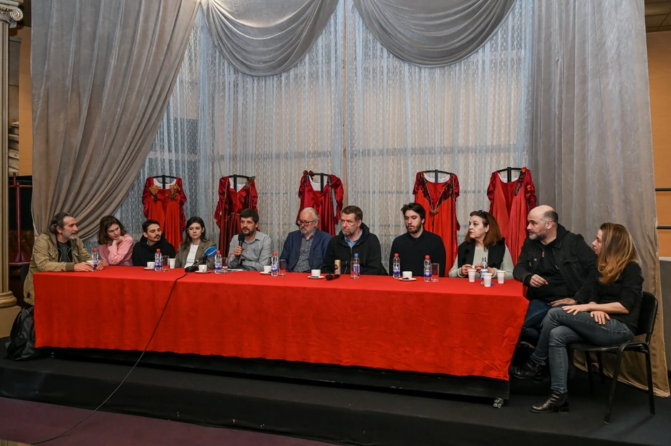Na konferenciji prisutnima su se obratili reditelj Jernej Lorenci, upravnik Srpskog narodnog pozorišta Zoran Đerić, direktor Drame Milovan Filipović, kao i cela glumačka i autorska ekipa predstave, rađene po motivima dela jednog od najzačajnijih ruskih romanopisaca F. M. Dostojevskog.