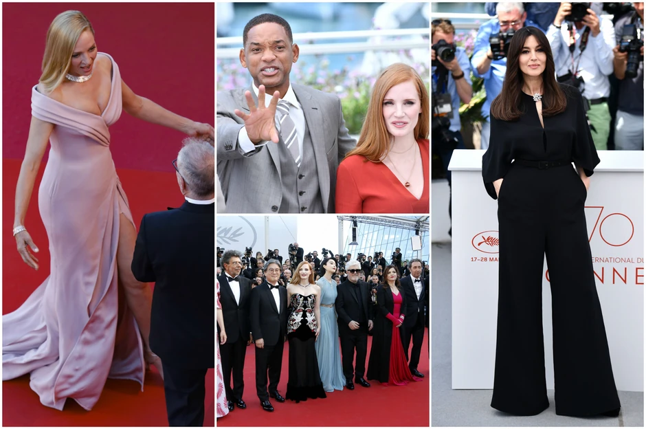 Crvenim tepihom su prodefilovale brojne svetske zvezde. Američka glumica Džulijan Mur u crvenoj haljini sa Suzan Sarandon u cenoj, Uma Turman u roze, Robin Rajt i El Faning u belom popele su se poznatim kanskim stepenicama, kao i Francuskinja Sandrin Kimberlen i jedna od omiljenih Almodovarovih glumica Rosi de Palma...
