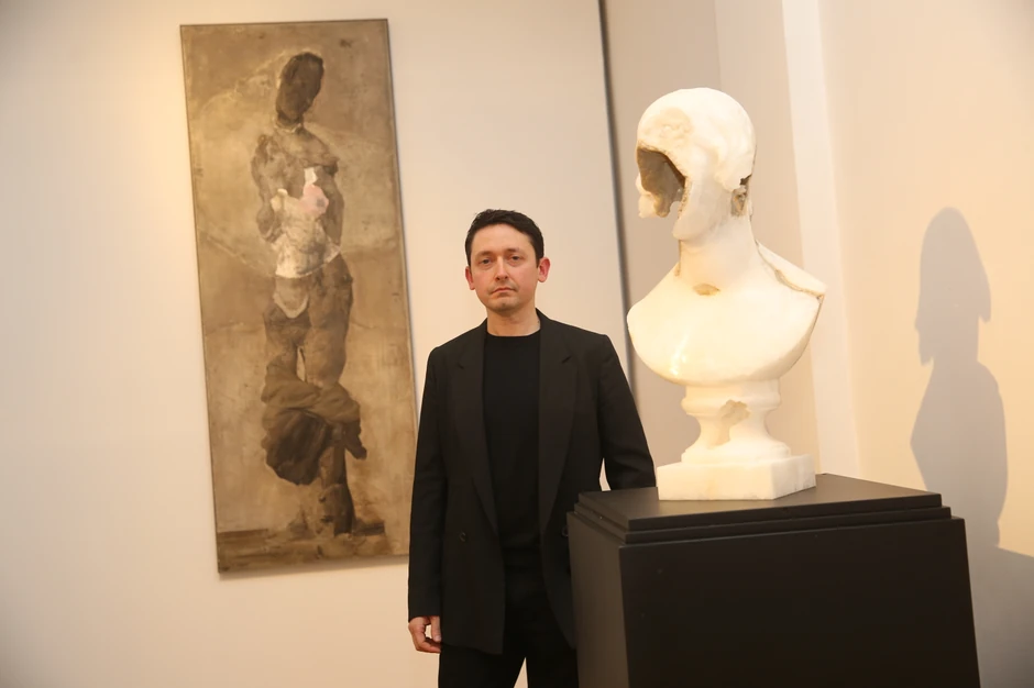 - Ovde je urađena neka vrsta inverzije istorijskog toka slikarstva. U donjem delu vidite sliku jednog akademskog slikara, a preko toga je primer akcionog slikarstva. Prekrivao sam površinu sloj po sloj, zapravo je razmazivao, pa nastavljao da slikam, pa opet to premazivao. Dakle, nismo dobili egzaktnu Renijevu kopiju, već više sliku inspirisanu njime čija je osnovna ideja distanca. Kada sam u kontaktu sa slikama starih majstora u muzeju, uvek razmišljam o tome kako njihove teme nisu nove ali da postoji velika udaljenost između našeg pogleda i pogleda onoga ko je sliku naslikao. Ja je zato prvo iskopiram a onda je razmontiram, pokušavam da je guram ka trenutku nestajanja, gde forme prestaju da budu prepoznatljive. To postaje jedna živa, okrutna, ekstremna slika. Odlučio sam da sačuvam samo tu ruku koja kao da pokušava da spreči obrušavanje i uništenje te stare slike, da zaustavi štetu i uništenje svoje duše – objasnio nam je Samori.