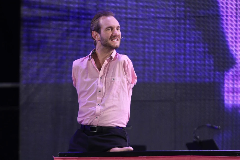 Direktor neprofite organizacije EUS, koja je organizovala Vujičićevu posetu Srbiji, Samuil Petrovski, zahvalio je Niku što je ponovo u Srbiji, dodajući da su ljudima potrebne nada, ohrabrenje i motivacija.