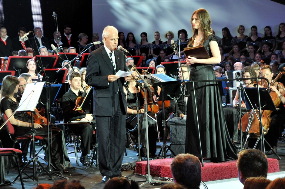 Domaćin večeri bio je nemački ambasador Hajnc Vilhem, koji se obtatio pisutnim gostima uz reči zadovoljstva što je u prilici da podrži ovakvu manifestaciju. Manifvestacija izvođenja Devete Betovenove simfonije koštala je tri milina dinara, od kojih je 1,1 milion izdvojila nemačka vlada.