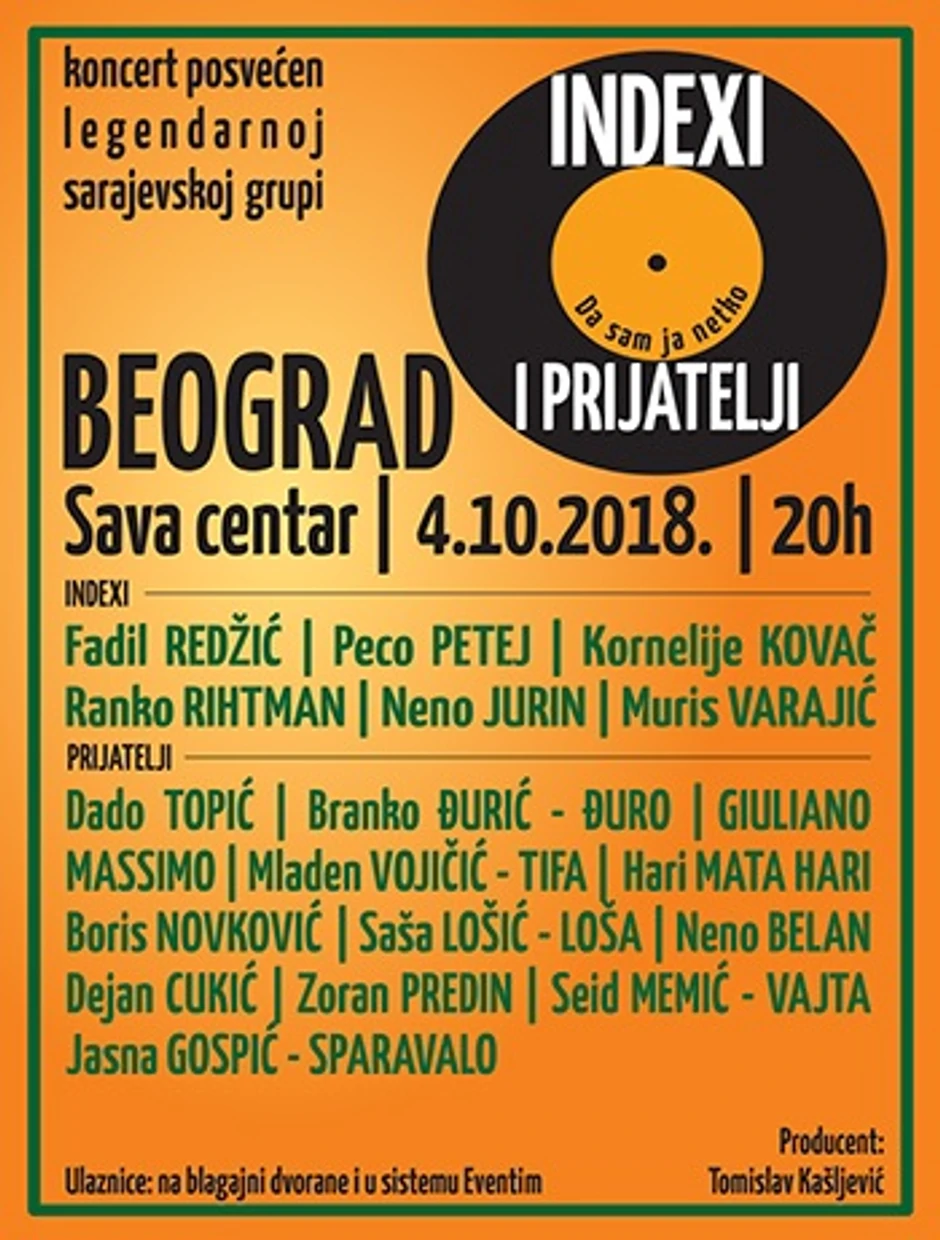 Koncertni spektakl "INDEXI I PRIJATELJI – DA SAM JA NETKO" i omaž kultnom sarajevskom bendu Indexi vraća se na pozornicu koncertne dvorane „Sava centra“ 4. oktobra 2018. godine. Ponovo se u Beogradu okupljaju muzičari, članovi Indexa, nastavljajući koncertnu tradiciju koja traje i obnavlja se iz godine u godinu još od 2007, uz uvek rasprodane dvorane i bezvremenske pesme Indexa koje obožavaju sve generacije.