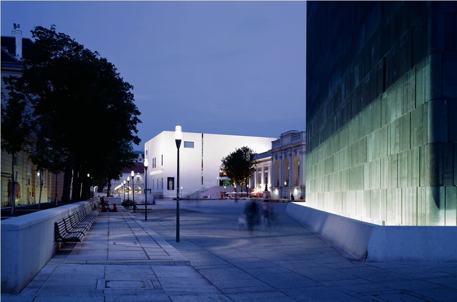 U Muzejskoj četvrti se nalaze 10 kulturnih institucija, među njima i Muzej Leopold, Muzej savremene umetnosti, Kunsthale.