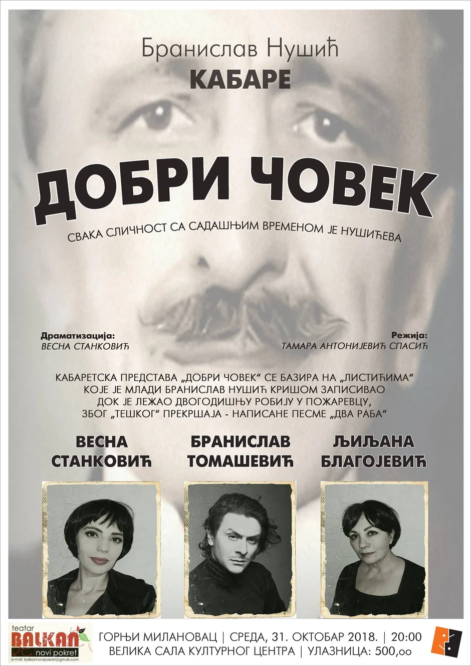 - Nadamo se da će predstava ostati na repertoaru Narodnog pozorišta zato što je priča vrlo značajna, a Nušuić je neko ko ne sme da se zaboravi. Voleli bismo da predstavu gledaju i školska deca – zaključila je Vesna Stanković.