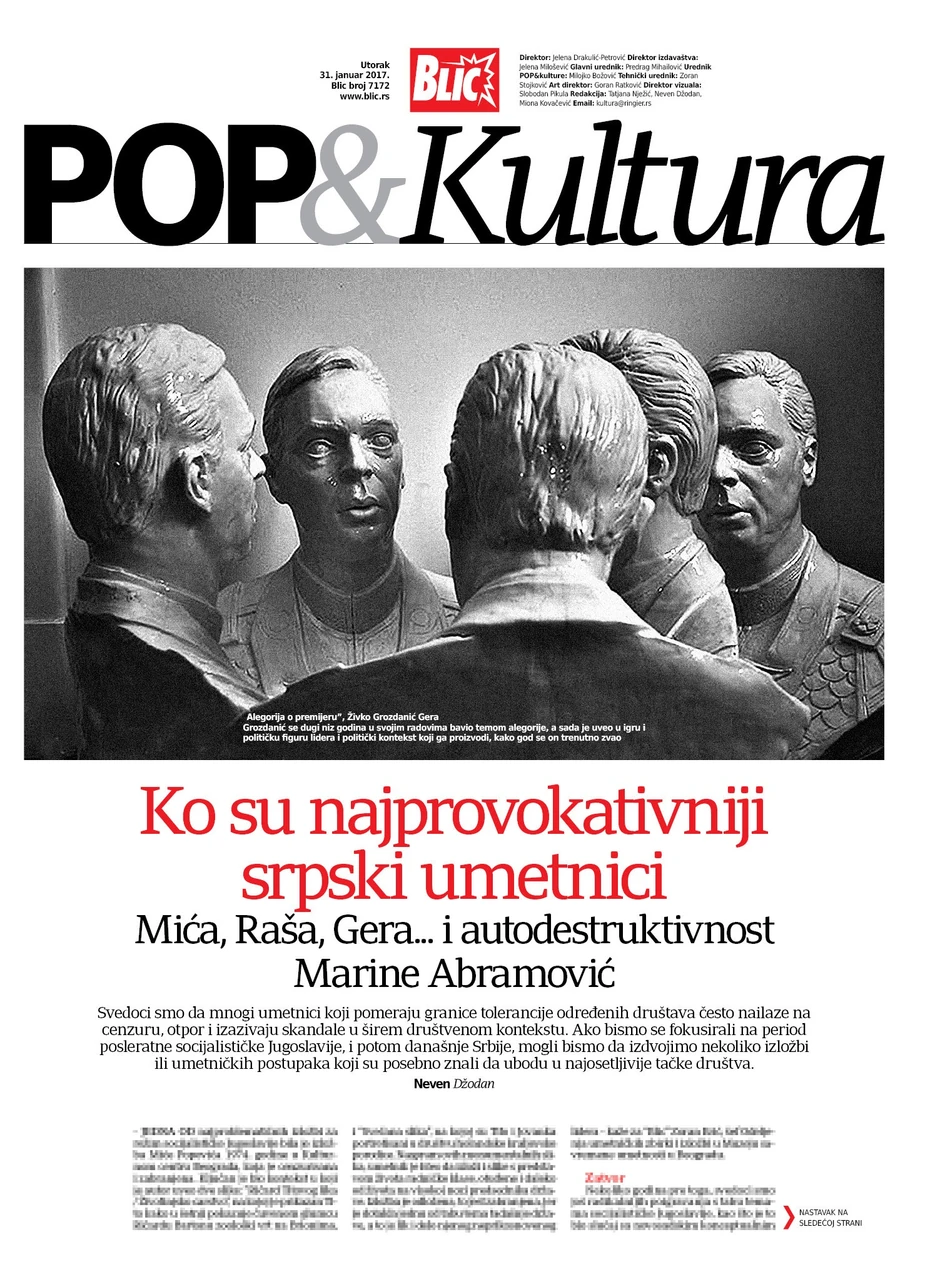 - Živko Grozdanić se dugi niz godina u svojim radovima bavio temom alegorije, a sada je uveo u igru i političku figuru lidera i politički kontekst koji ga proizvodi, kako god se on trenutno zvao. Umetnik naglašava da jedna ista društvena matrica proizvodi liderske figure u srpskom društvu u kome vlada partokratija, a svaka politička partija je autoritarna i liderska. Ovaj performans nije naišao na reakciju političkog establišmenta, možda zato što se desio u privatnom prostoru, iza očiju šire javnosti. Međutim, u eri interneta sve je dostupno, pa smo tako svi mogli da vidimo taj performans kada je postavljen na Jutjub ili Fejsbuk - objašnjava Erić.