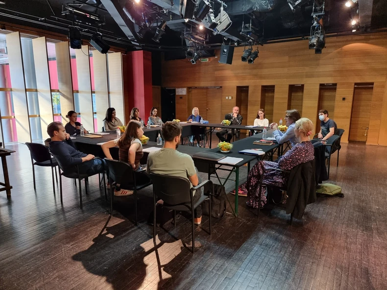 U predstavi igraju Milena Radulović, Nebojša Ljubišić, Sloboda Mićalović, Radovan Vujović, Milan Marić, Jovana Belović, Iva Stefanović, Tamara Šustić i Denis Murić. Scenografiju potpisuju Numen/For use i Vanja Magić, kostimograf je Mia Popovska, kompozitor Marjan Nećak a za scenski govor je zadužena Ljiljana Mrkić Popović.