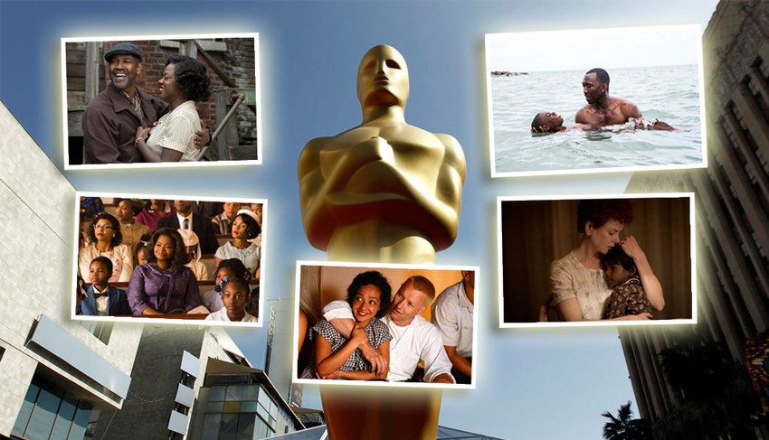 Od devet ostvarenja nominovanih za najbolji film godine, četiri se bave pričama nebelaca: "Moonlight", sa osam nominacija, prati različite faze odrastanja i sazrevanja crnog gej mladića u Reganovoj Americi; "Hidden Figures" (3) je adaptacija istinite priče o grupi afro-američkih matematičarki koje je NASA angažovala za vreme Hladnog rata; "Fences" (4) se fokusira na porodicu bivšeg bejzbol igrača (Denzel Vošington) koji sada radi kao đubretar; "Lion" (6) prati usvojenog indijskog dečaka (Dev Patel) u potrazi za biološkim roditeljima.