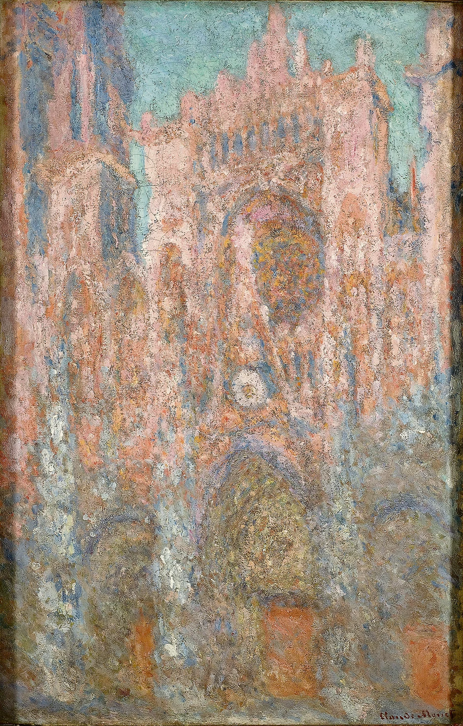 Klod Mone se ubraja u utemeljivače impresionizma. Njegova čuvena rečenica: „Za mene, predmet je od sekundarnog značaja: Ja želim da otkrijem šta leži između mene i predmeta”, upućuje na suštinu Moneove umetnosti. U središtu njegovog interesovanja bila je svetlost, njena priroda. Tako je, posmatrajući katedralu u Ruanu, beležio boje, oblike i svoje impresije pod osvetljenjem koje se menjalo u skladu sa dobom dana. Na taj način je nastala Ruanska serija, od koje je umetnik izdvojio 20 dela koja su prvi put bila izložena u Parizu 1895. „Ružičasta ruanska katedrala“ je jedna od njih, a u Narodnom muzeju u Beogradu se nalazi od 1939. kada je za Muzej kneza Pavla na licitaciji u Parizu kupljena novcem od prodatih ulaznica. Tadašnji direktor Milan Kašanin tvrdio je da je ovim otkupom Muzej dobio najznačajniju sliku u svojoj kolekciji.