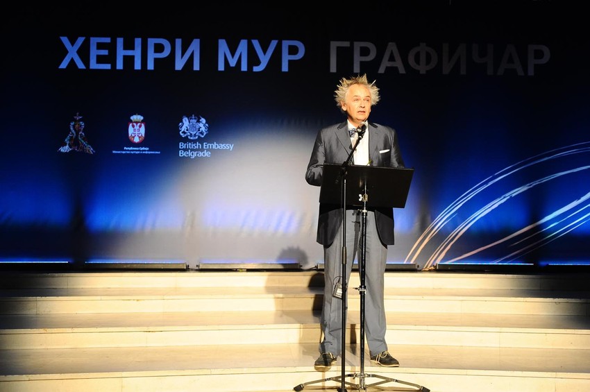 Govoreći o tom slavnom engleskom vajaru svetskog renomea ministar se osvrnuo na činjenicu da je veliki umetnik bio u Beogradu 1995. kada je postao počasni član SANU, da su mu dela izlagana u galeriji SANU i paviljonu Cvijeta Zuzorić i istakao višestruki značaj ove izložbe s kojom je „Henri Mur po drugi put u Beogradu“