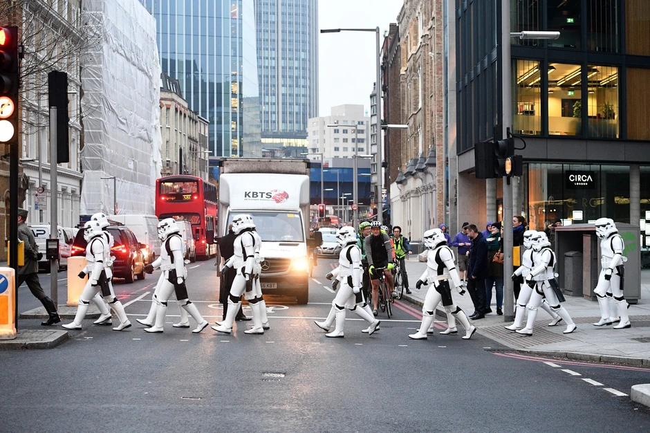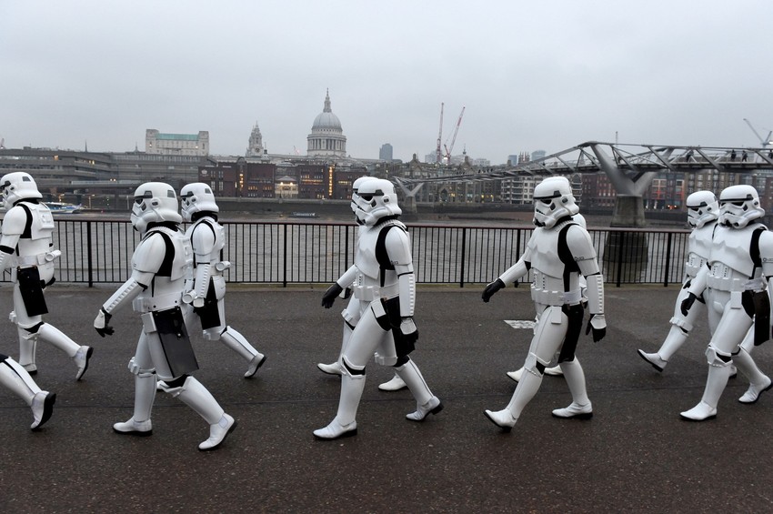 Oko dvadesetak fanova, potpuno kostimiranih, prošetali su se Milenijumskim mostom i vozili metroom, usput odajući poštu lokacijama u Londonu gde je čuvena franšiza snimana.