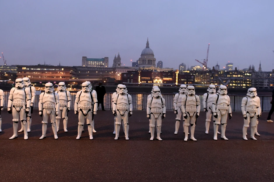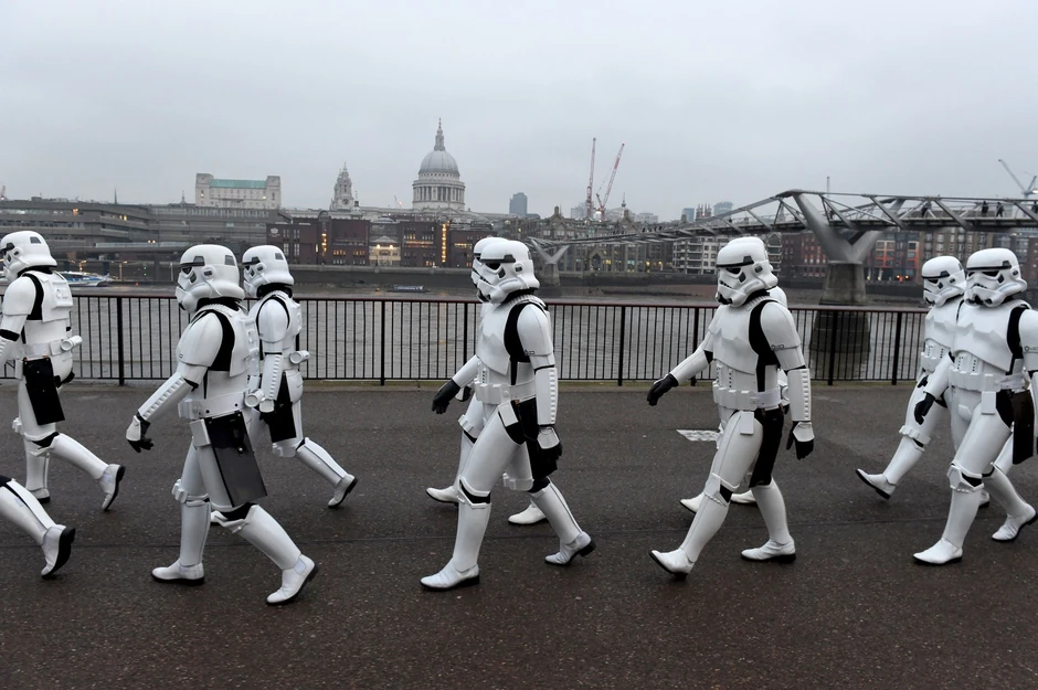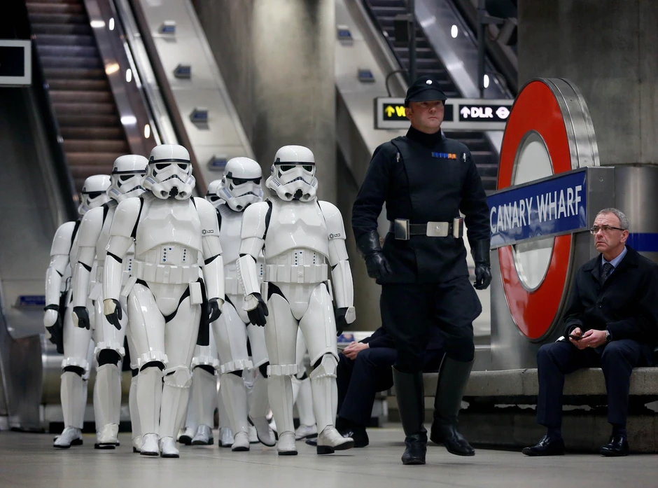U jednom gradu, ne baš tako daleko, ako imate vizu, sinoć se okupila grupa pravih Star Wars etuzijasta i obučeni kao Stormtruperi krenuli su na premijeru filma "Odmetnik 1 - Star Wars priča".