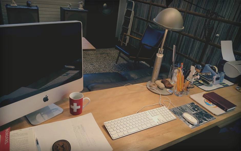 Japanski pisac objavio je na svom sajtu slike radne sobe. Žute drvene olovke, šolja sa švajcarskom zastavom i bejzbol figurice ukrašavaju impresivno urednu prostoriju čiji je čitav zid ispunjen pločama.